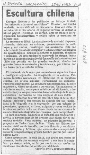 Escultura chilena [artículo] Víctor Carvacho Herrera.