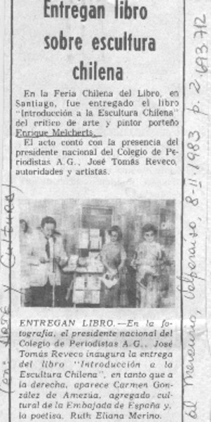 Entregan libro "Introducción a la escultura chilena". [artículo]