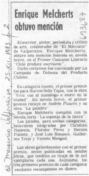 Enrique Melcherts, periodista y pintor de Valparaíso. [artículo]