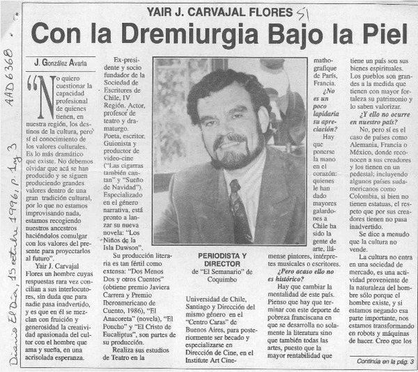 Con la dremiurgia bajo la piel [artículo] J. González Avaria.