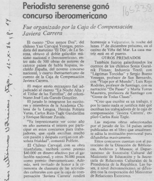 Periodista serenense ganó concurso iberoamericano [artículo].