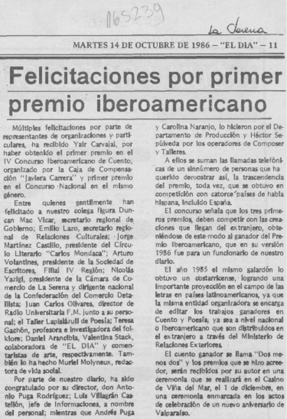Premio Iberoamericano en círculo "Carlos Mondaca" [artículo].
