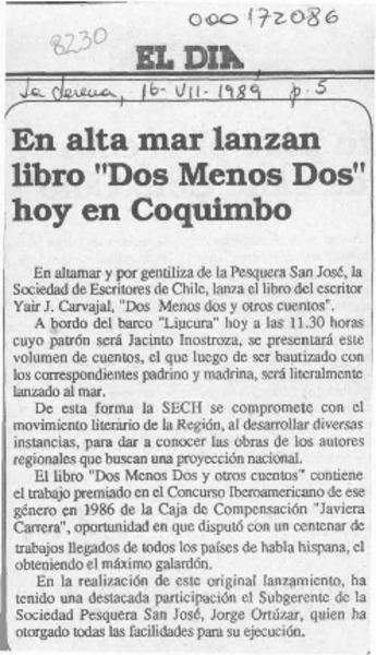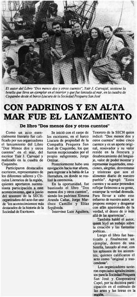 En alta mar lanzan libro "Dos menos dos" hoy en Coquimbo [artículo].