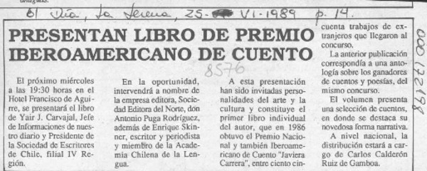 Presentan libro de premio iberoamericano de cuento [artículo].