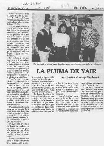 La pluma de Yair [artículo] Gastón Munizaga Duplaquet.