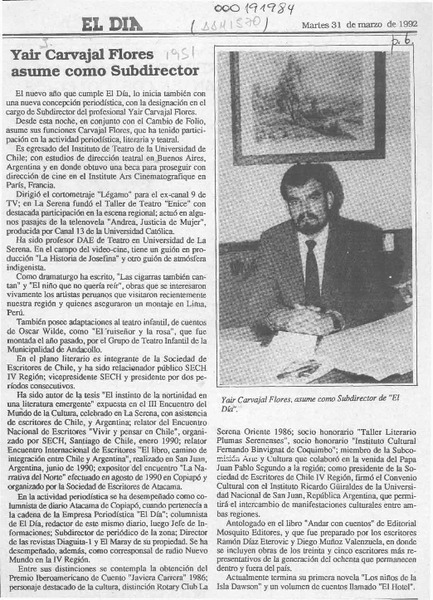 Yair Carvajal Flores asume como Subdirector [artículo].