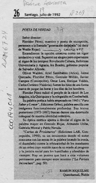 La obra poética de Floridor Pérez [artículo] Wellington Rojas Valdebenito.