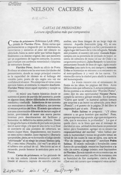 Cartas de prisionero, lectura significativa más que comparativa [artículo] Nelson Cáceres A.