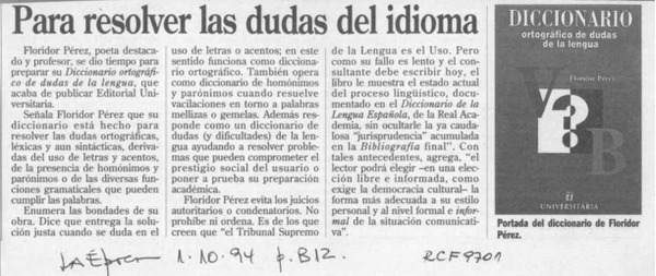 PEREZ, FLORIDOR - DICIONARIO ORTOGRAFICO DE DUDAS DE LA LENGUA - Jonas - Espíritu del valle