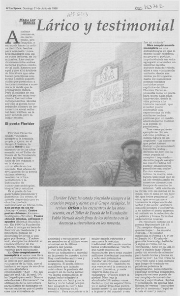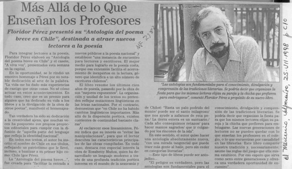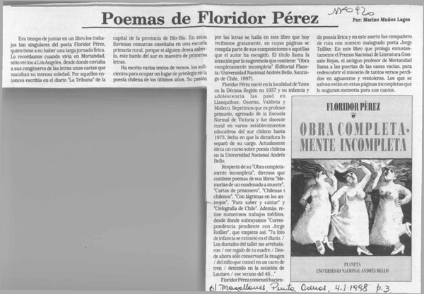 Poemas de Floridor Pérez [artículo] Marino Muñoz Lagos.