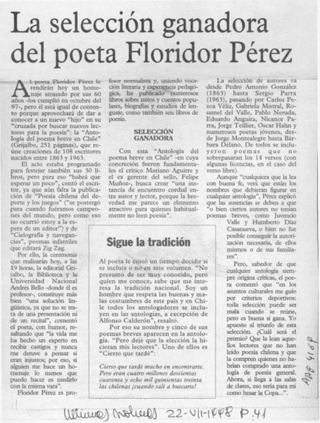 La Selección ganadora del poeta Floridor Pérez [artículo].
