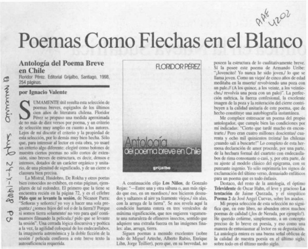 Poemas como flechas en el blanco [artículo] Ignacio Valente.