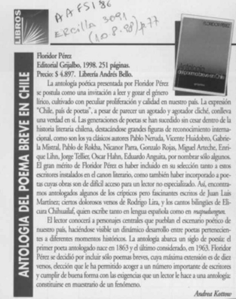 Antología del poema breve en Chile [artículo] Andrea Kottow.