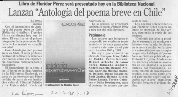 Lanzan "Antología del poema breve en Chile" [artículo].