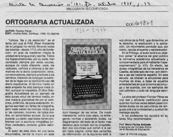 Ortografía actualizada [artículo] Mario Farías Andrade.