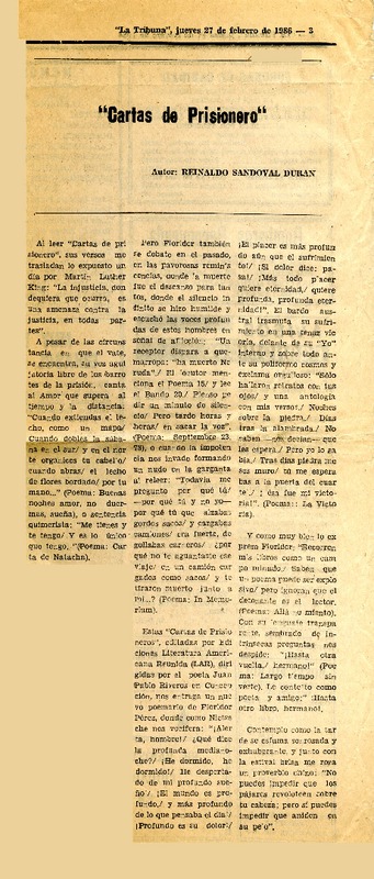 "Cartas de prisionero" [artículo] Reinaldo Sandoval Durán.