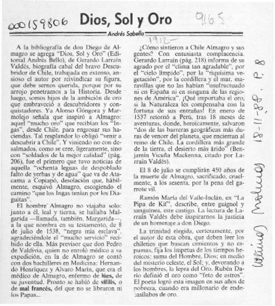 Larraín Valdés, Gerardo - Dios, sol y oro