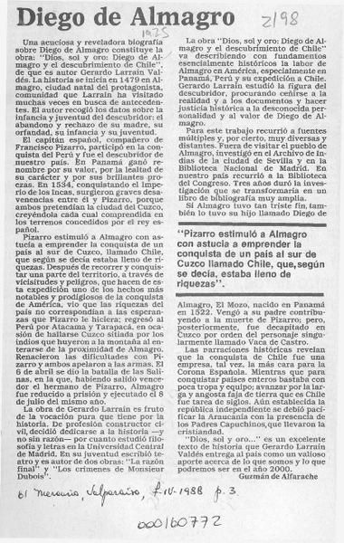 Diego de Almagro y Pedro de Valdivia a la conquista de los lectores [artículo].