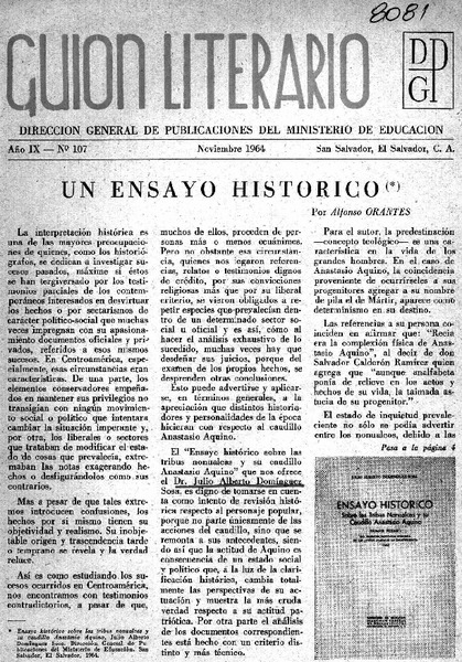 Un Ensayo histórico [artículo] Alfonso Orantes.