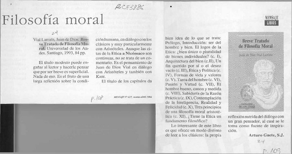 Filosofía moral [artículo] Arturo Gaete, S. J.