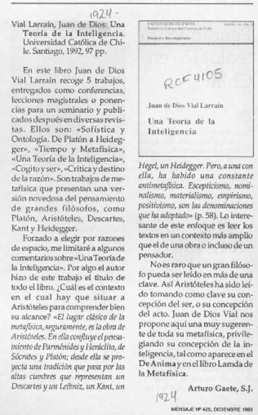 Una teoría de la inteligencia [artículo] Arturo Gaete.