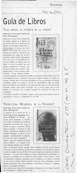 VIAL LARRAIN, JUAN DE DIOS - MIRADA AL INTERIOR DE LA FAMILIA - REYES, CARMEN - Muñoz M., Mónica - ESTRUCTURA METAFISICA DE LAFILOSOFIA - Mirada al interior de la familia