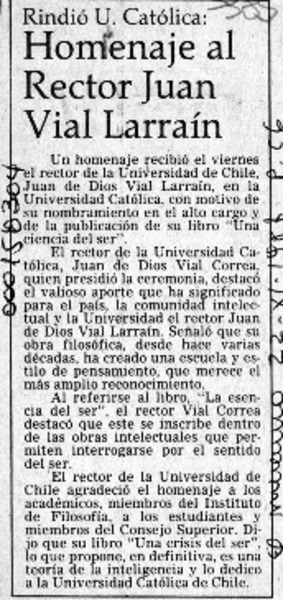 Homenaje al Rector Juan Vial Larraín [artículo].