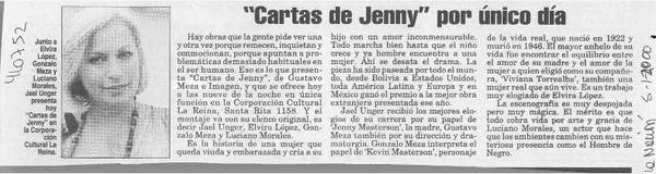 "Cartas de Jenny" por único día [artículo]