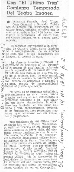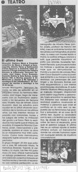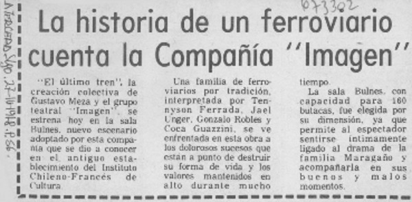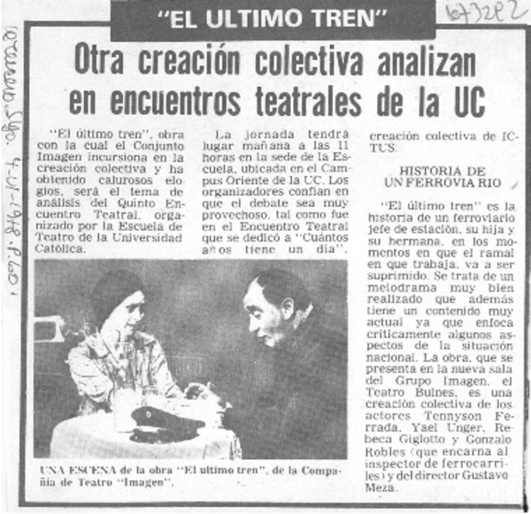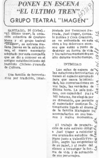 Con "El último tren" comienza temporada del teatro Imagen. [artículo]