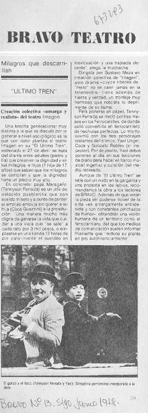 Teatro: obra nacional en producción de "Imagen" [artículo] Yolanda Montecinos.