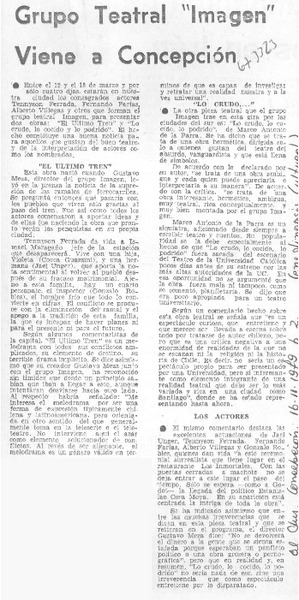 Grupo Teatral "Imagen" viene a Concepción. [artículo]