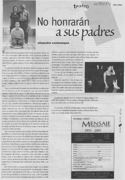 No honrarán a sus padres [artículo] Alejandra Costamagna