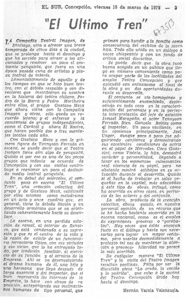 El último tren" [artículo] Hernán Varela Valenzuela.
