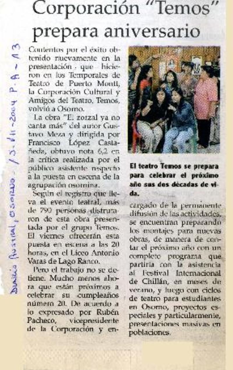 Corporación "Temos" prepara aniversario. [artículo]