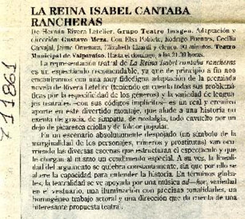 La Reina Isabel cantaba rancheras - Meza, Gustavo - Autores chilenos - Reina Isabel cantaba rancheras - Rivera Letelier, Hernán