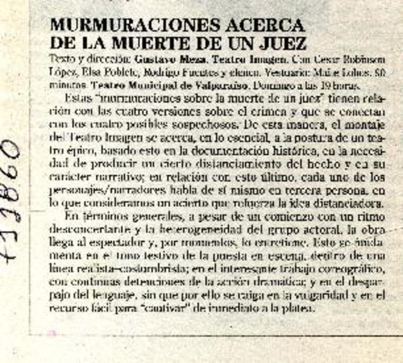 Autores chilenos - Meza, Gustavo - Murmuraciones acerca de la muerte de un juez