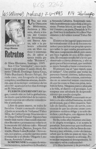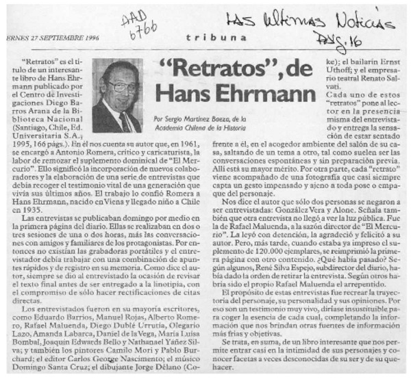 "Retratos", de Hans Ehrmann [artículo] Sergio Martínez Baeza.