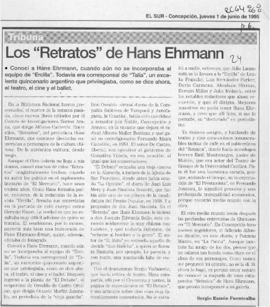 Los "Retratos" de Hans Ehrmann [artículo] Sergio ramón Fuentealba.