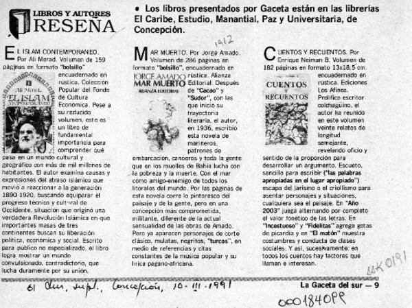 Autores chilenos - Neiman, Enrique - Autores brasileños - Amado, Jorge - Mar muerto - Cuentos y recuentos