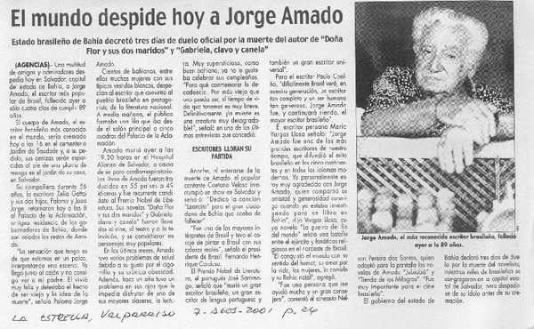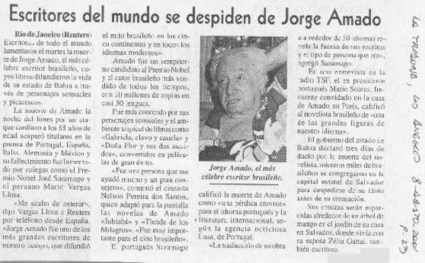 Escritores del mundo se despiden de Jorge Amado [artículo]