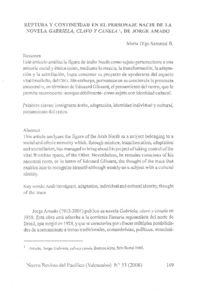 Ruptura y continuidad en el personaje Nacib de la novela Grabriela, clavo y canela, de Jorge Amado [artículo] María Olga Samamé B.