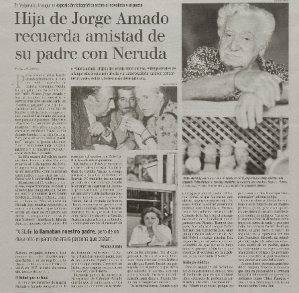 Hija de Jorge Amado recuerda amistad de su padre con Neruda [artículo] Andrés Gómez Bravo.