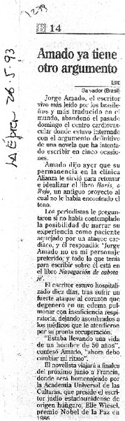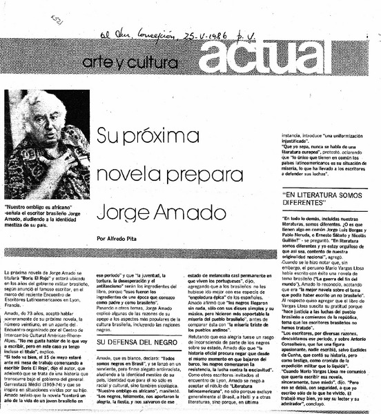 Su próxima novela prepara Jorge Amado [artículo] Alfredo Pita.