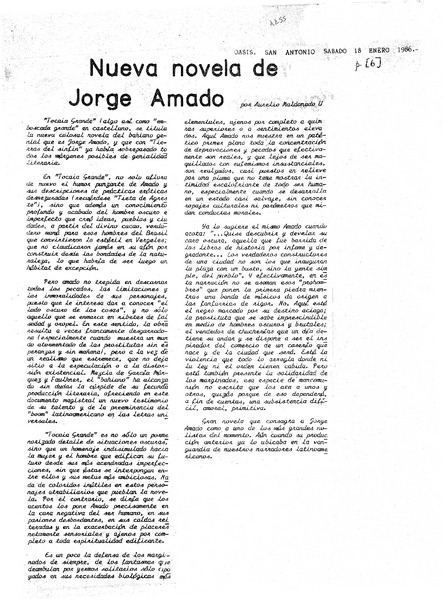 Nueva novela de Jorge Amado [artículo] Aurelio Maldonado U.