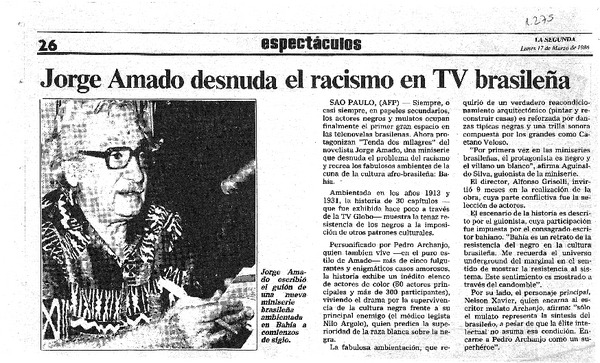 Jorge Amado desnuda el racismo en TV brasileña. [artículo]