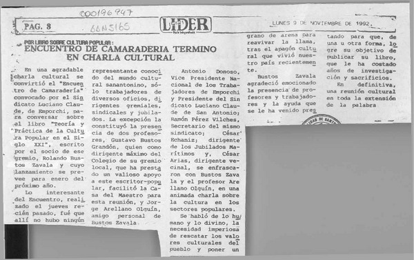 Encuentro de camaradería terminó en charla cultural [artículo].