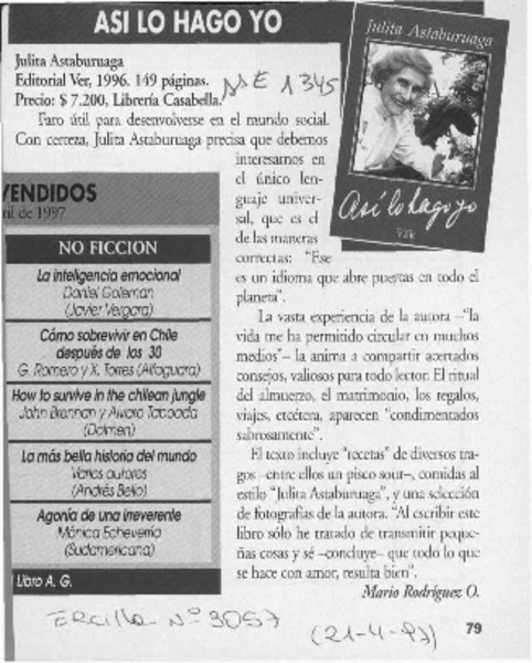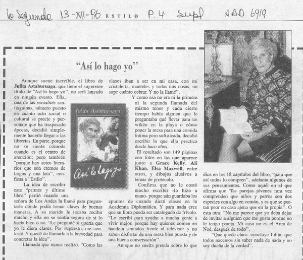 Julita Astaburuaga, "No! ésa no soy yo" [artículo] Silva Peña Pinilla.