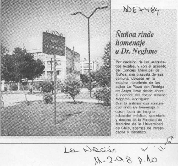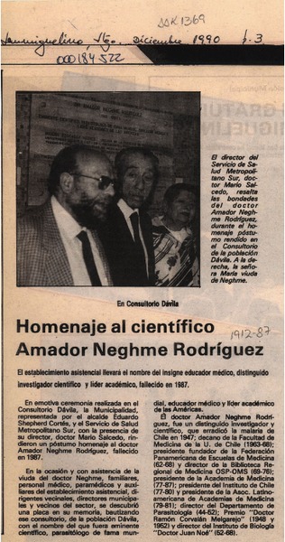Ñuñoa rinde homenaje a Dr. Neghme [artículo].