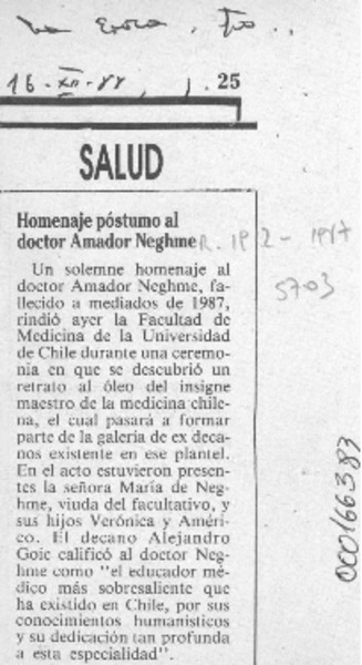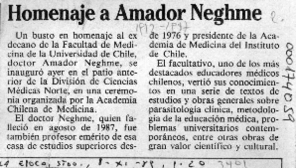 Homenaje póstumo al doctor Amador Neghme [artículo].