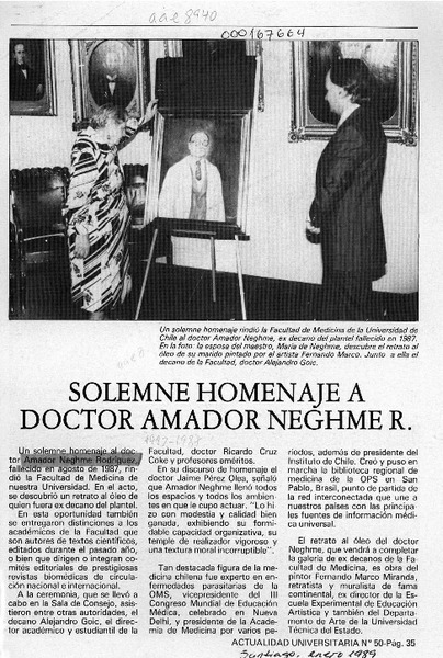 Solemne homenaje a doctor Amador Neghme R. [artículo].